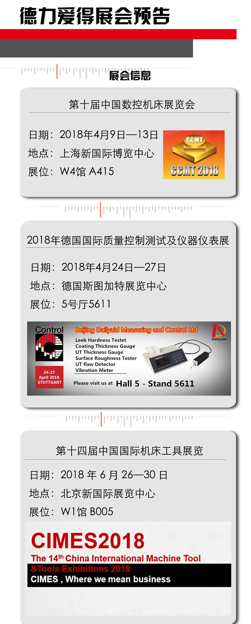 2018年是互相交流,共同進(jìn)步的一年。德力愛(ài)得將會(huì)如期參加以上展會(huì),屆時(shí)歡迎