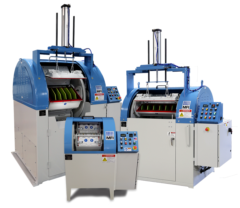 離心式筒式精加工機采用費里斯輪原理。四桶中的每一個裝滿大約50-80%的充滿介質(zhì)、部件、水和化合物。